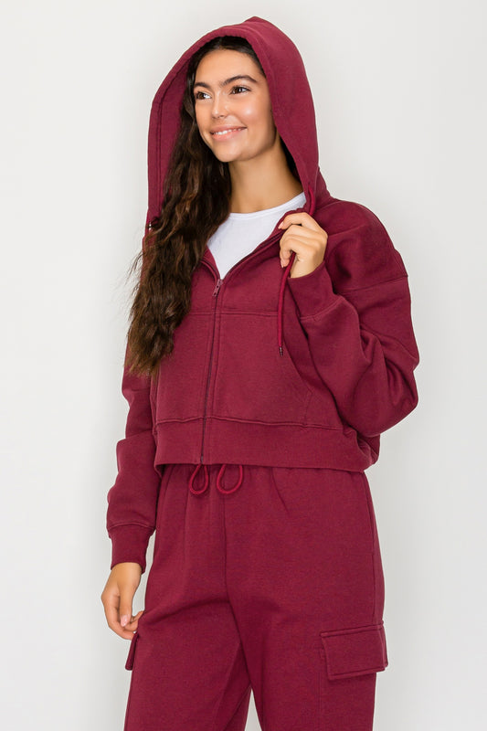 Cropped Fleece Zip Up Hoodie
