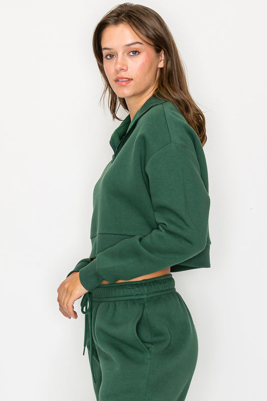 Cropped Half Zip Fleece Sweatshirt
