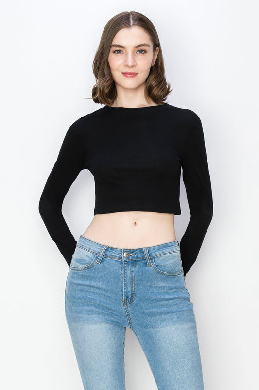 Cropped Long Sleeve Mini Rib T Shirt