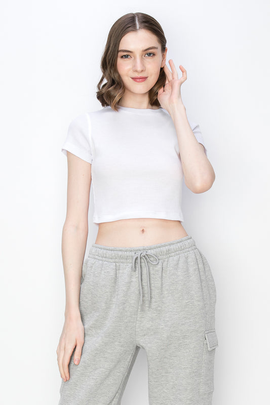 Short Sleeve Thermal Crop Top T-Shirt