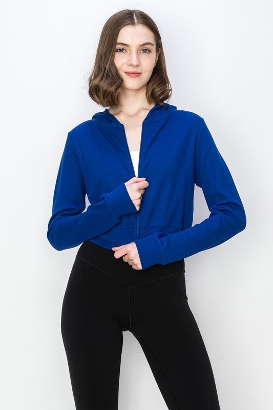 Cropped Zip Up Thermal Hoodie Jacket