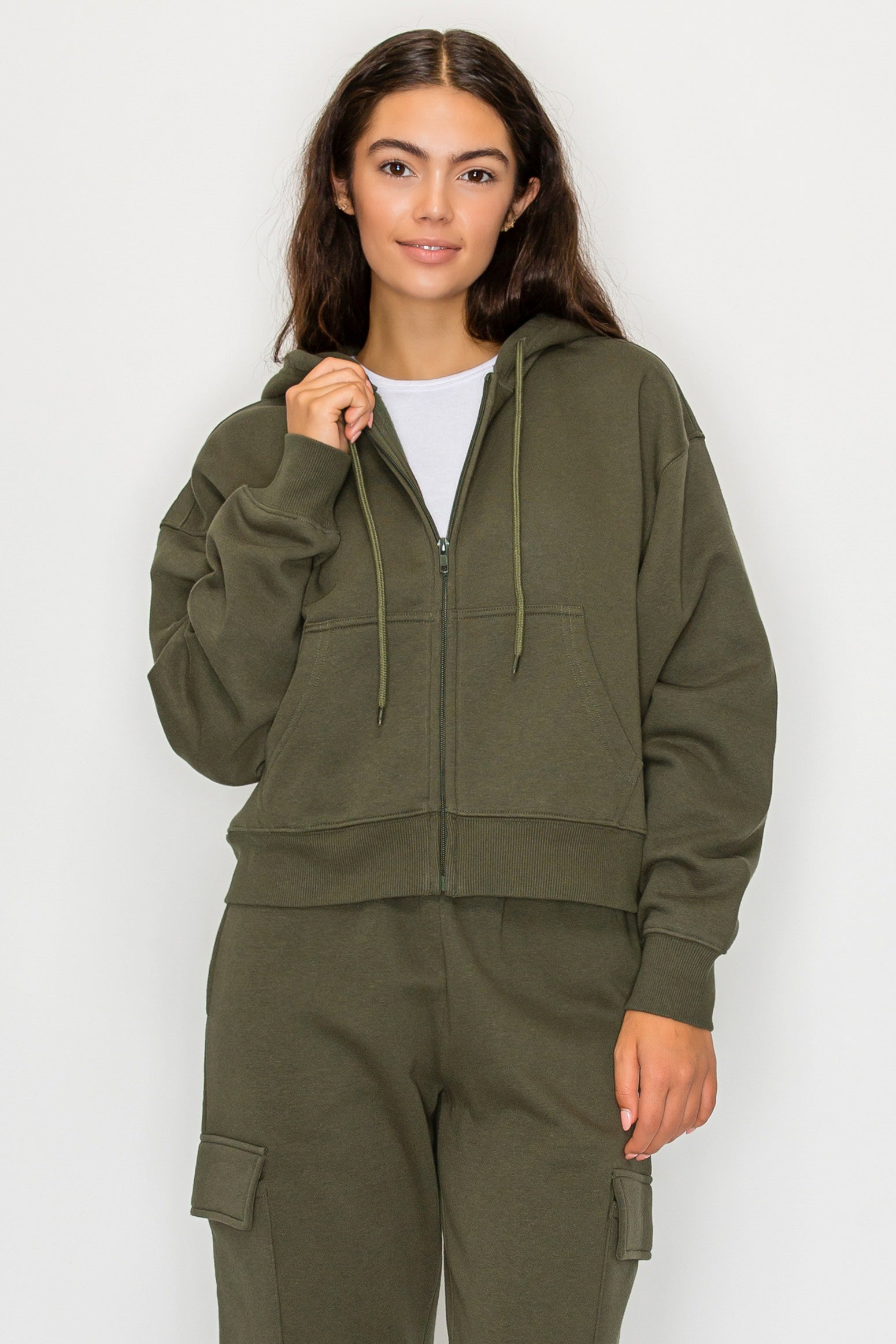 Boxy Zip Up Fleece Hoodie